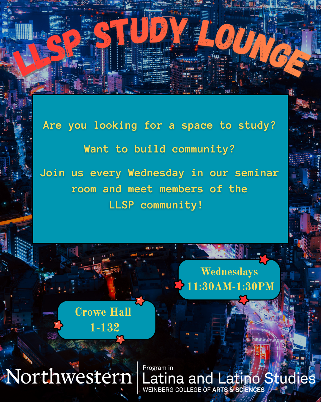 Are you looking for a space to study? Want to build community? Join us every Wednesday in our seminar room, and meet members or the LLS...